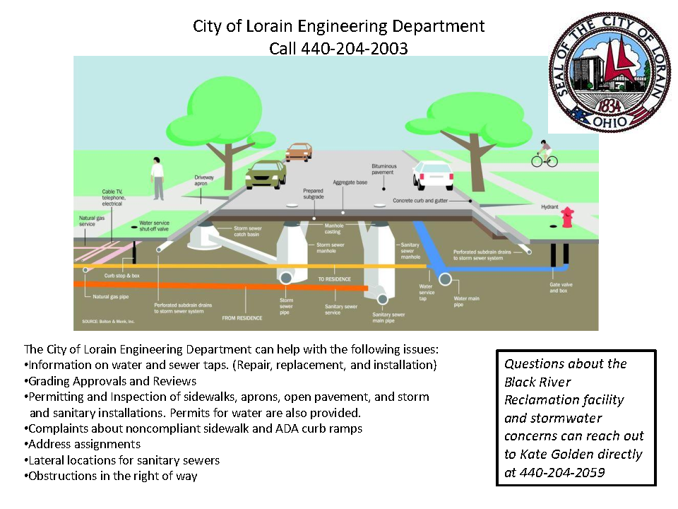 The City of Lorain Engineering Department can help with the following issues: