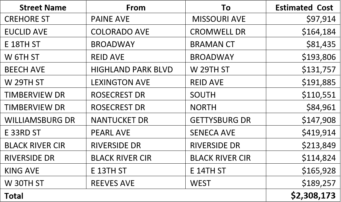 2024 Street Department In-house Road Rehab Work (priority list as funding allows):